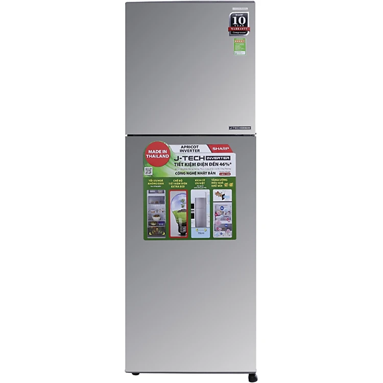 Tủ Lạnh Sharp SJ-X251E-SL được giữ nguyên thiết kế truyền thống với ngăn đá phía trên quen thuộc cùng màu bạc sáng sang trọng, hứa hẹn sẽ làm nổi bật không gian bếp của ngôi nhà bạn. Cùng với dung tích lớn 241L (dung tích sử dụng 224L), bạn có thể thoải mái lưu trữ lượng thức ăn cho gia đình từ 4-6 người sử dụng.