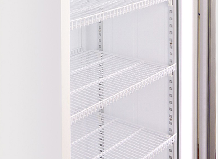 Thiết bị có dung tích 400 lít với 4 khay chứa có thể điều chỉnh nên bạn có thể thay đổi vị trí giúp tận dụng tối đa không gian sử dụng và dễ dàng phân loại, sắp xếp các sản phẩm trưng bày trong tủ. Tủ mát có thể chứa nhiều loại kích thước chai hoặc lon nước khác nhau rất tiện lợi.