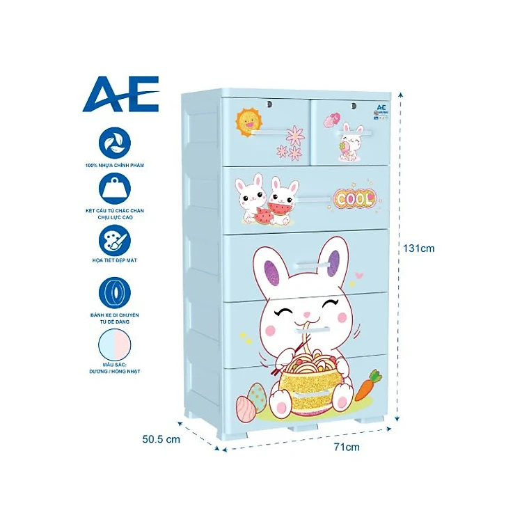 Tủ nhựa 5 tầng Qui Phúc AE màu xanh dương mẫu Rabbit KT 710 x 505 x 1310 mm _ Juno Sofa hàng lắp sẵn