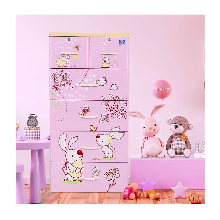 Tủ nhựa 5 tầng Qui Phúc KID màu hồng mẫu Con Thỏ KT 600 x 470 x 1300 mm _ Juno Sofa hàng lắp sẵn