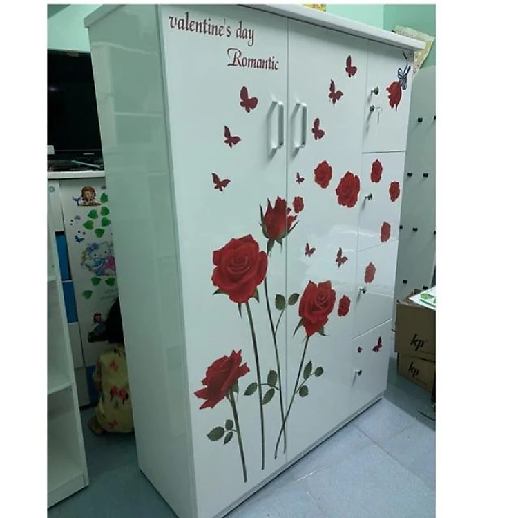 Tủ nhựa đài loan 2 buồng 4 ngăn nhỏ tranh hoa hồng