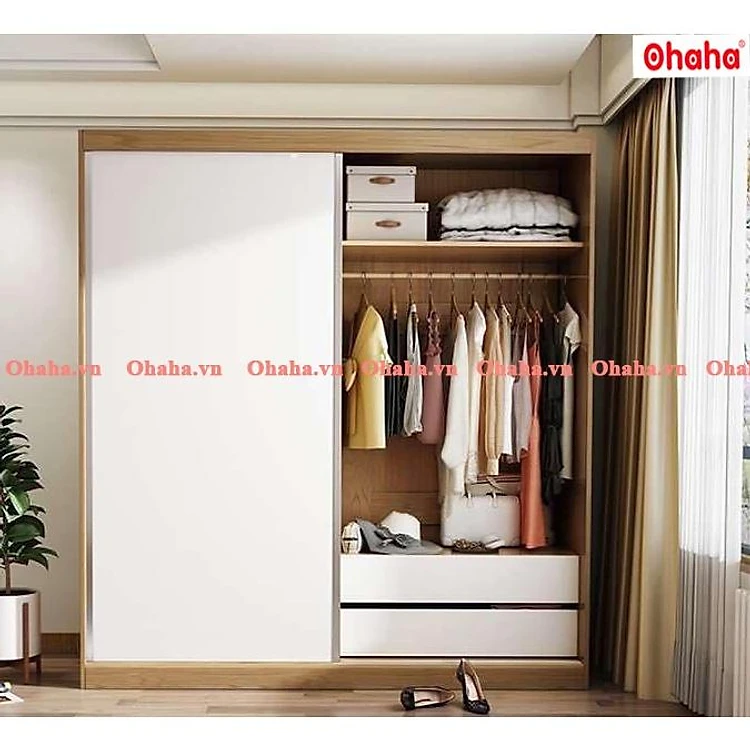 [Kèm Ảnh Thực Tế - Miễn phí vận chuyển & Lắp đặt] TỦ QUẦN ÁO GỖ CÔNG NGHIỆP 2 CÁNH LÙA KIỂU VINTAGE OHAHA - VI001