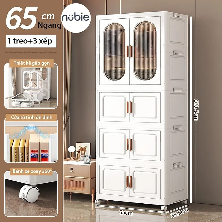 Tủ Quần Áo Gấp Gọn Có Ngăn Treo Trẻ Em Nubie Ngang 65/70cm, Đựng Đồ Đa Năng Thông Minh, Tháo Lắp Dễ Dàng, Nhựa PP