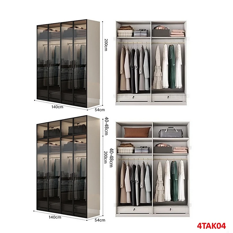 Tủ quần áo gỗ MDF cánh kính cường lực khung nhôm 4TAK04 - Nội thất lắp ráp Viendong Adv