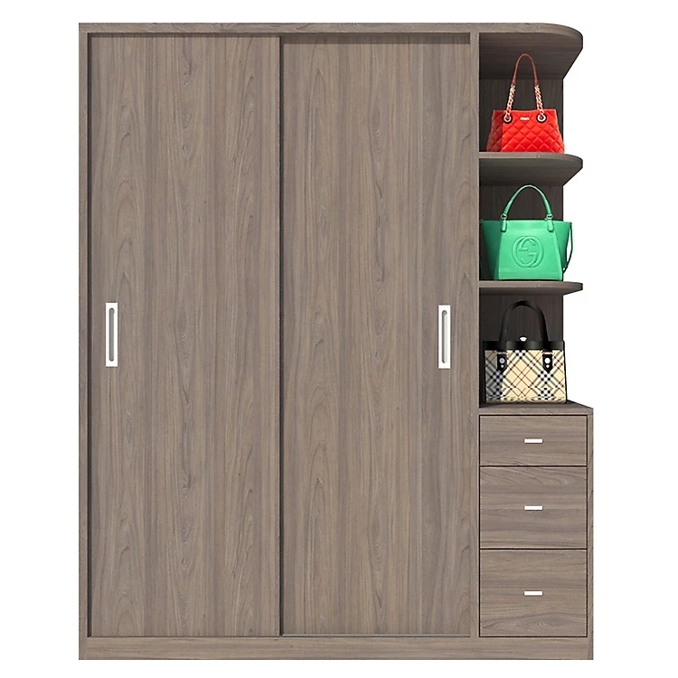 Tủ quần áo gỗ MDF Tundo cửa lùa màu óc chó 160 x 55 x 200cm