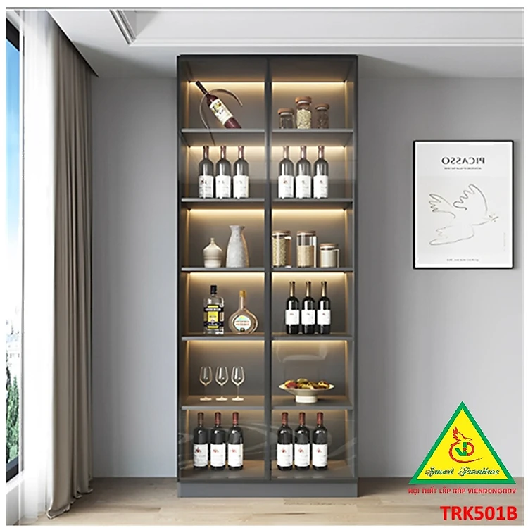 Tủ Rượu Trang Trí Phòng Khách Bằng Gỗ MDF Cánh Kính – Sang Trọng - Hiện Đại TRK501B - NỘI THẤT LẮP RÁP VIENDONGADV