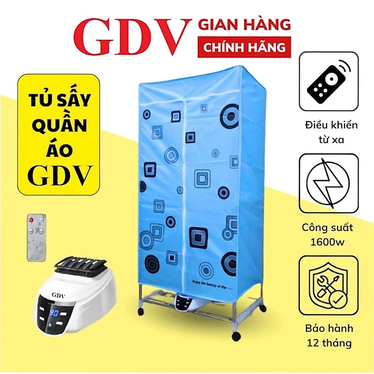 Tủ Sấy Máy Sấy Quần Áo GDV Điều Khiển Từ Xa Công Suất 1600W - Màu Ngẫu Nhiên - Hàng Chính Hãng