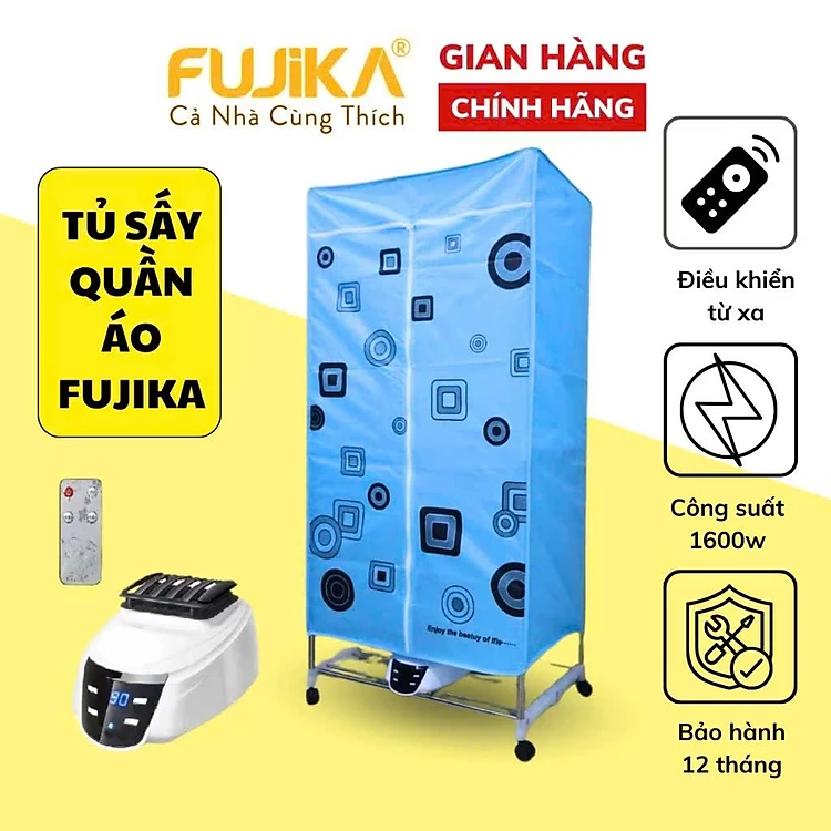 Tủ Sấy Quần Áo Fujika FJ-CD0116 Có Điều Khiển Từ Xa Diệt Khuẩn Chống Mốc Tiết Kiệm Điện Năng Công Suất 1600W HÀNG CHÍNH HÃNG