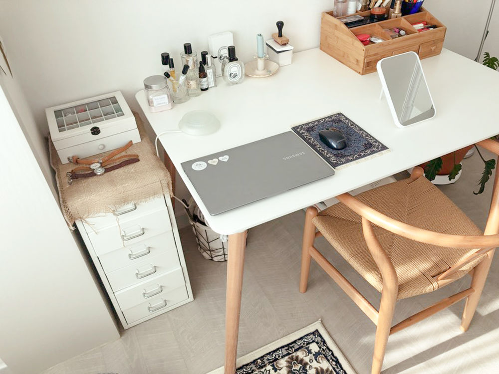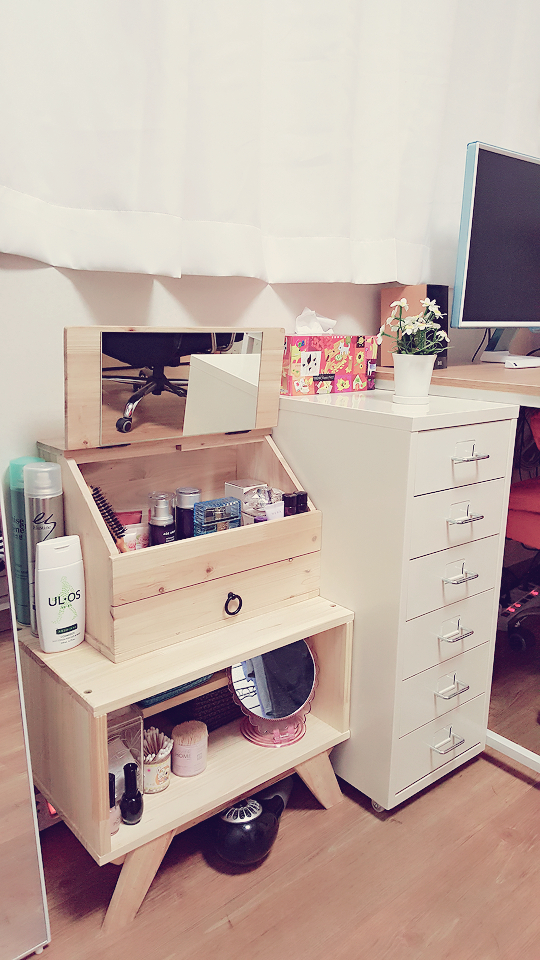 Với kệ helsingborg bạn có thể để gần bàn trang điểm để đựng mỹ phẩm và dụng cụ trang điểm.