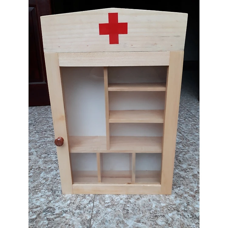 Trong tủ chia nhiều ngăn để phân loại thuốc / dụng cụ y tế.