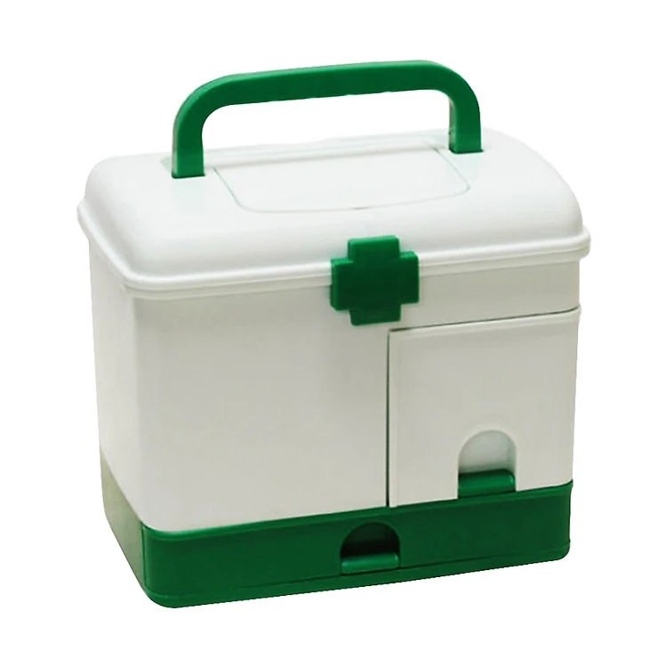 Tủ thuốc gia đình bằng nhựa có kiểu dáng nhỏ gọn, nhiều ngăn, chứa đựng được nhiều loại thuốc và dụng cụ y tế khác nhau.