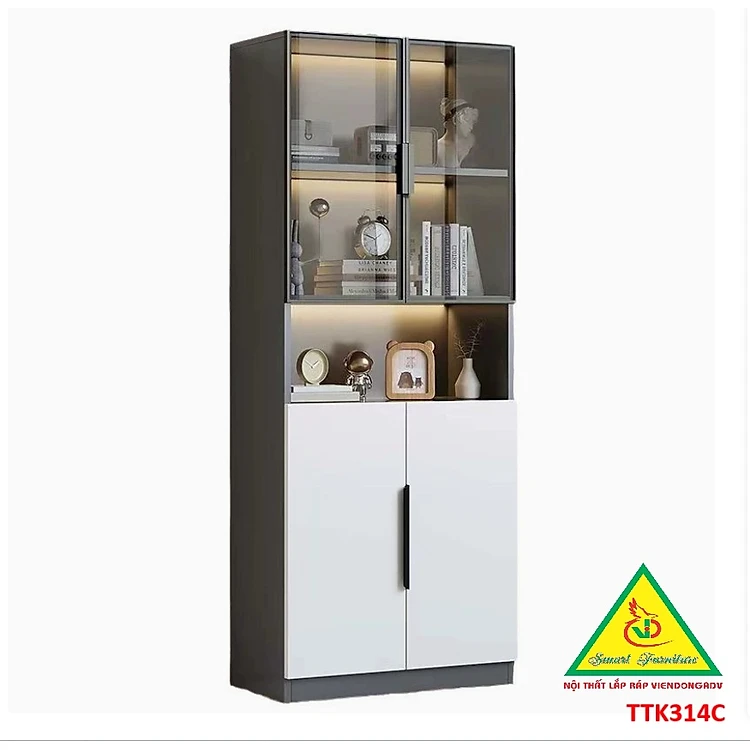 TỦ TRANG TRÍ PHÒNG KHÁCH BẰNG GỖ MDF CÁNH KÍNH TTK314 - NỘI THẤT LẮP RÁP VIENDONGADV