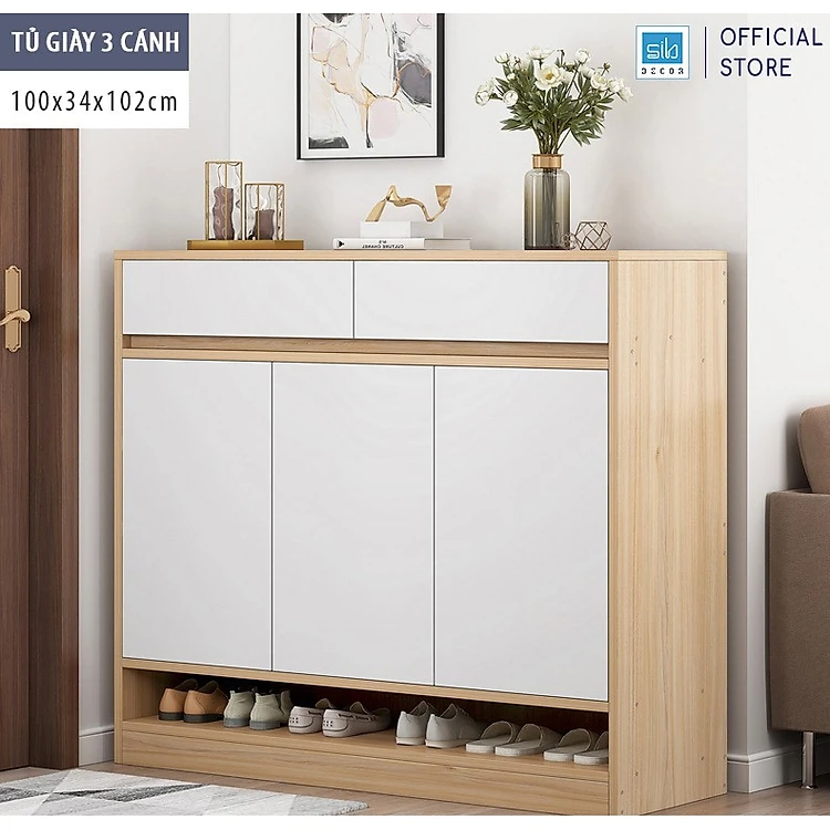 Tủ Giày Gỗ Đơn Giản Mà Đẹp Đa Dạng Kích Thước, Phù Hợp Đặt Tại Lối Vào Phòng Khách Thương Hiệu SIB Decor TG11
