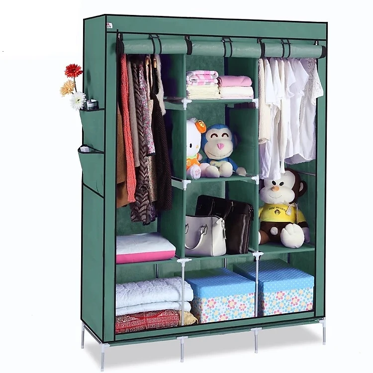 Tủ Vải Đựng Quần Áo 3 Buồng 8 Ngăn ( mẫu trơn ) Tiết Kiệm Diện Tích Cho Gia Đình - Tặng 1 móc kẹp trái tim
