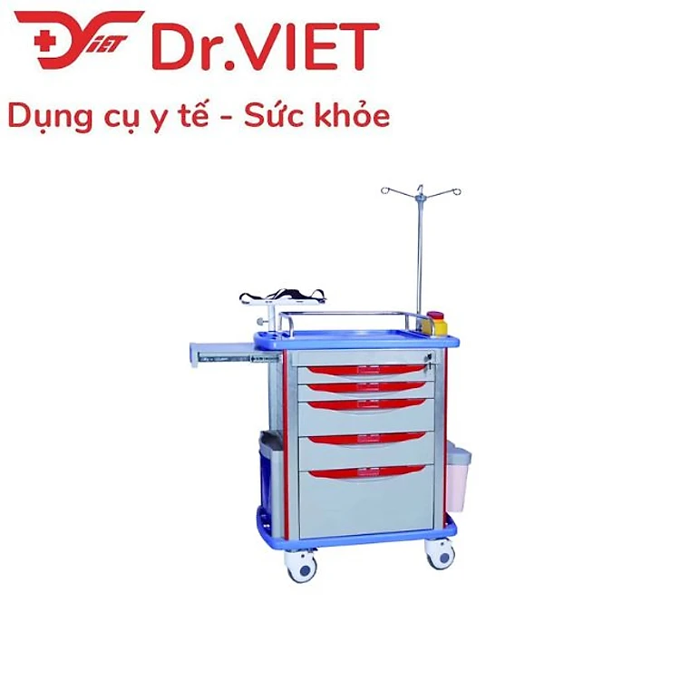 Tủ xe đẩy dụng cụ cấp cứu Tajermy TJM-TC02 bao gồm 2 ngăn kéo nhỏ, 2 ngăn kéo trung và 1 hộc tủ lớn.