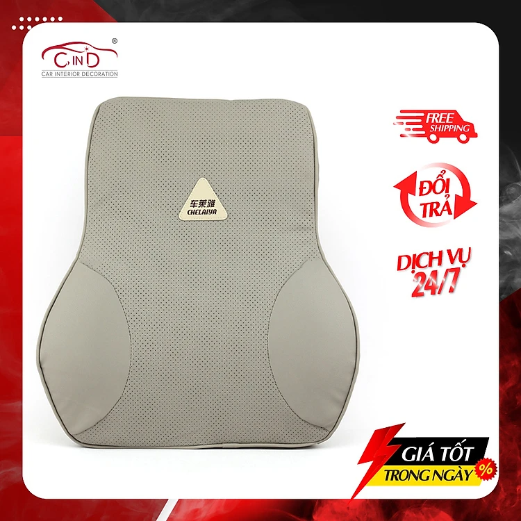 Tựa Lưng Ô Tô Cao Su Non Bọc Da CHELAIYA MS001 Màu Xám