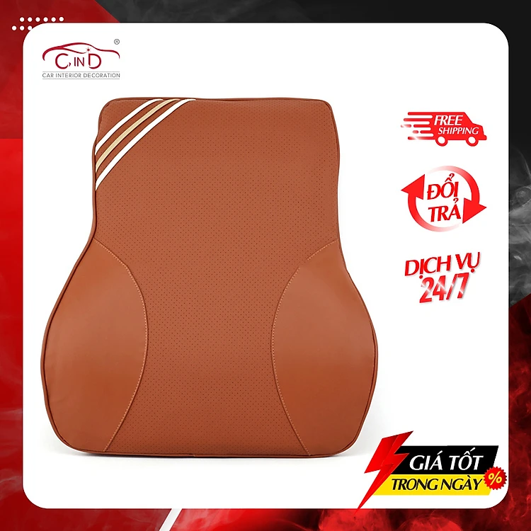 Tựa Lưng Ô Tô Cao Su Non Bọc Da CIND QF004 Màu Nâu