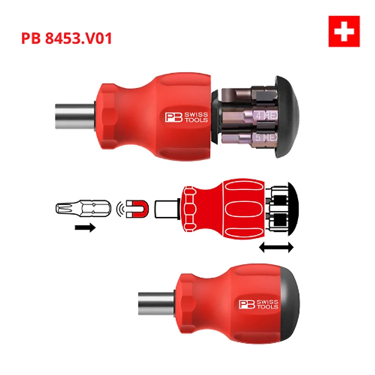 Tua Vít Lùn PB Swiss Tools 8453.V01 CN Gồm 6 Mũi Bits Gắn Sẵn Trong Tay Cầm Sản Xuất Tại Thụy Sỹ