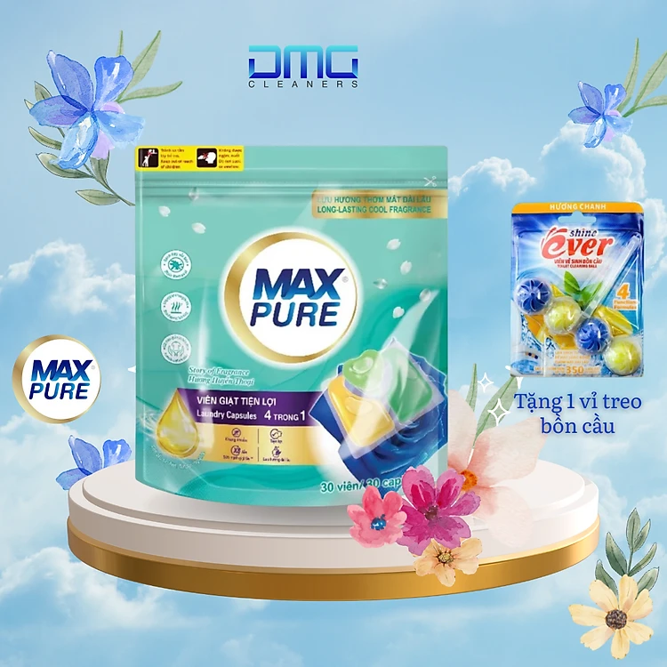 Túi 30 Viên Giặt Tiện Lợi MaxPure 4in1- tặng 1 vỉ treo bồn cầu