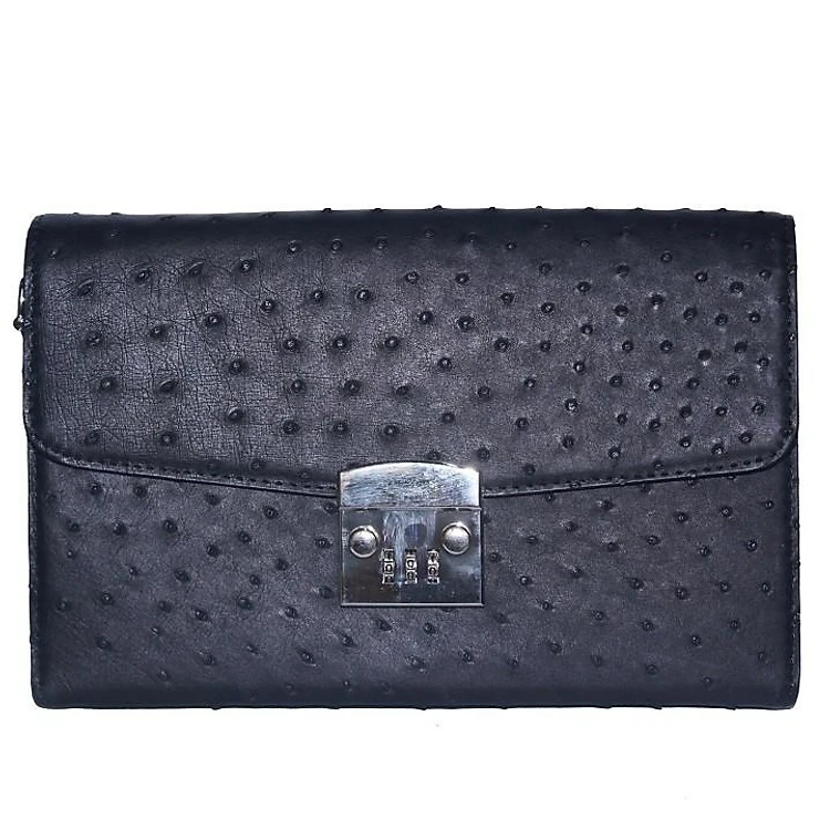 Túi cầm tay nữ Huy Hoàng da đà điểu màu đen HC6451