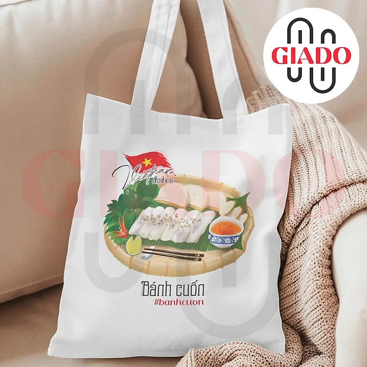 Túi canvas GIADO, túi tote in hình món ăn Việt Nam mẫu Bánh cuốn