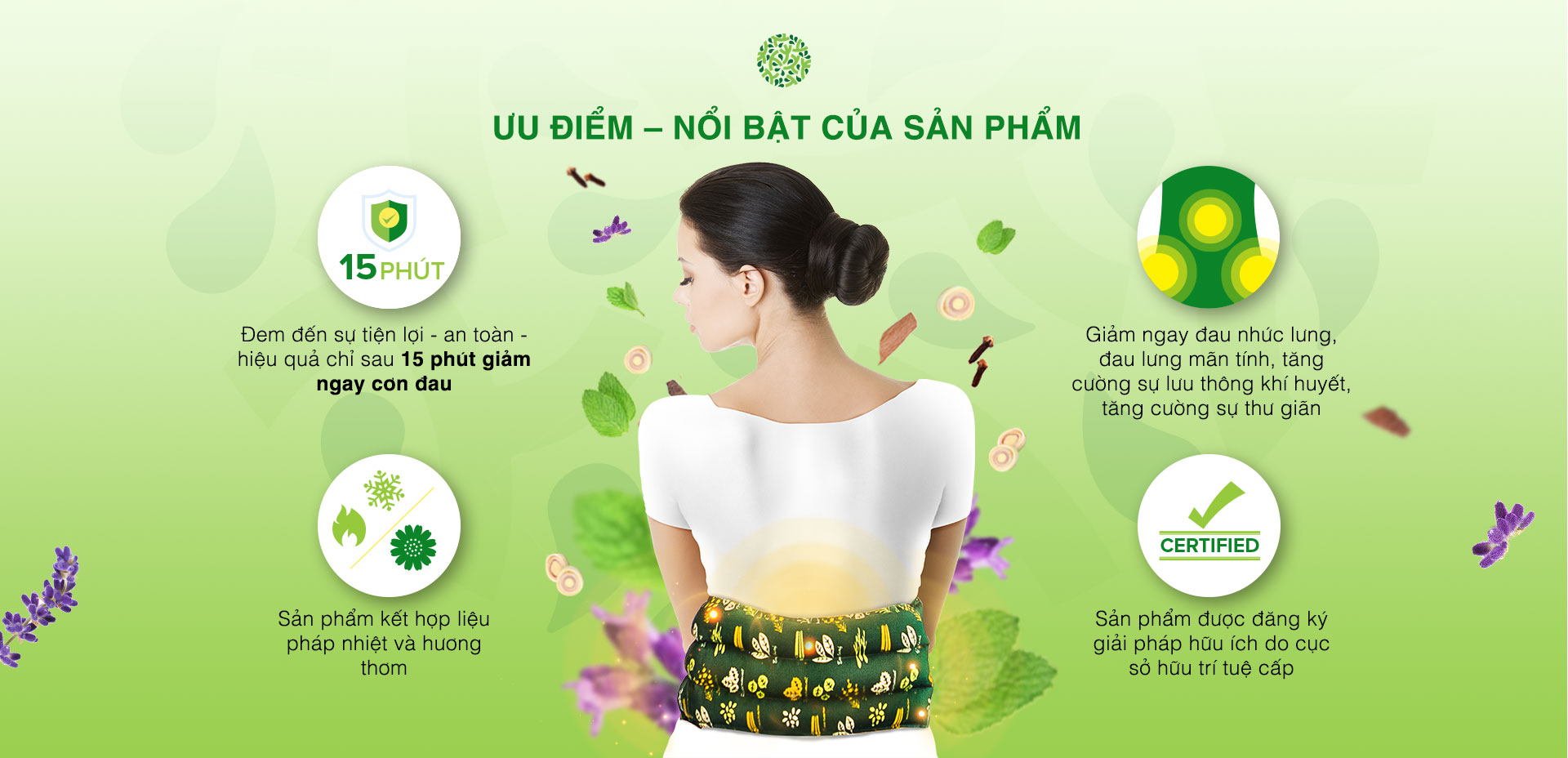 Chườm nóng: giúp tăng cường sự tuần hoàn máu, làm giảm nhức mỏi vùng lưng, giảm các cơn đau mãn tính, đau mỏi cột sống, thoát vị đĩa đệm, giảm lượng mỡ tích tụ vùng lưng...