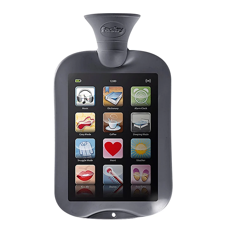 - Túi Chườm Fashy Germany Apps Cảm Ứng làm từ loại nhựa dẻo, đúc nguyên khối an toàn, không mùi, khó phai màu. Nắp đậy túi chườm có rãnh an toàn chống rò rỉ.