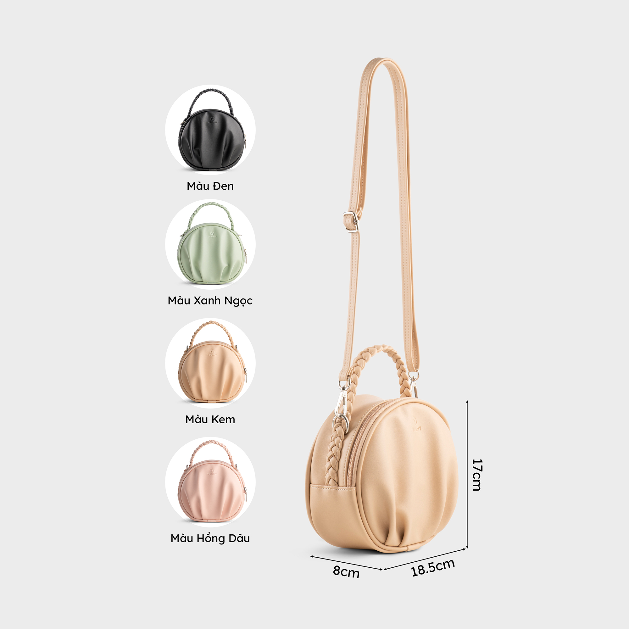 Túi Yuumy ( Thời trang nữ thiết kế nhún dáng tròn size 19 - Túi đeo chéo da Seasand YN264 )