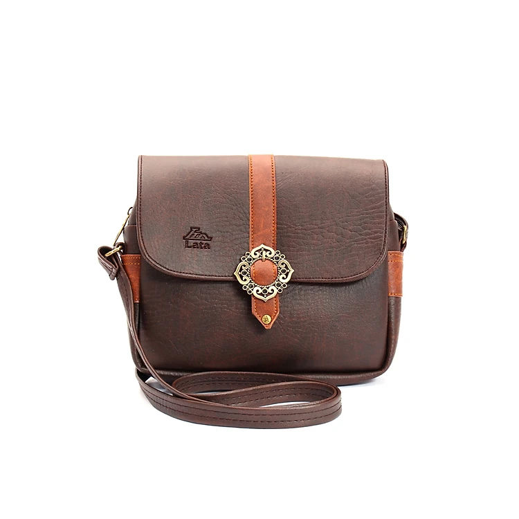 Túi Đeo Chéo LATA HN04 được thiết kế cầu kỳ với phần khóa gài được gắn huy hiệu chạm khắc hoa văn tinh xảo. Mặt trước trang trí logo thương hiệu được khắc chìm logo đẹp mắt tăng thêm sự tinh tế. Túi có màu nâu trang nhã, dễ phối đồ, là món phụ kiện thời trang hoàn hảo giúp bạn nổi bật hơn khi ra ngoài.
