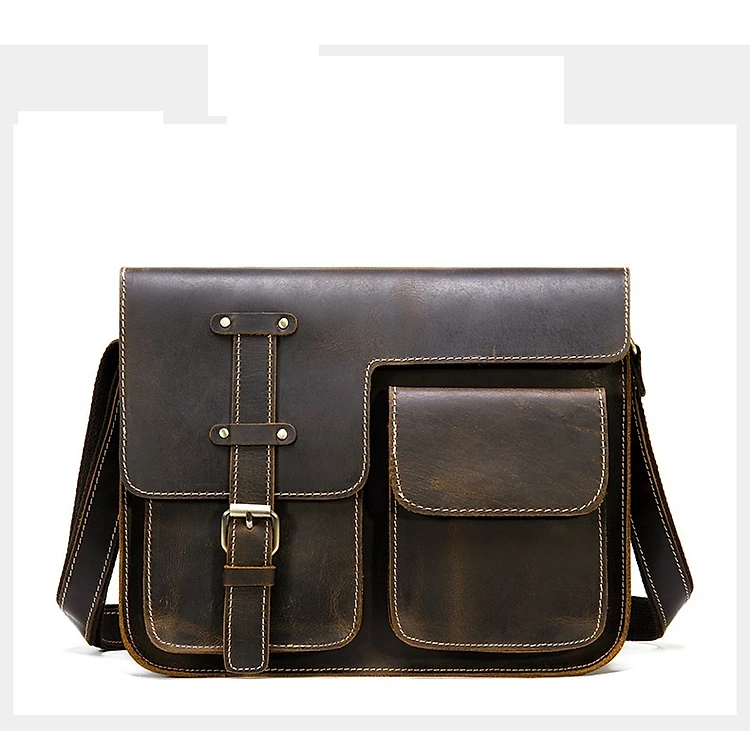 Túi đeo chéo nam dáng ngang BHM1050 chuẩn Da bò sáp thô nguyên tấm, siêu bền bỉ vừa laptop 13.3", A4