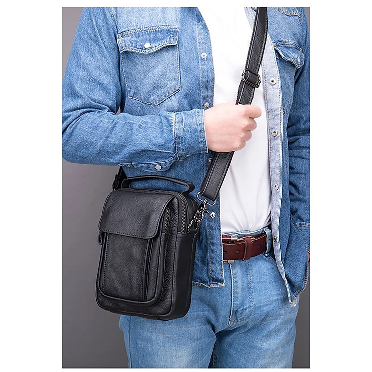 Túi đeo chéo nam mini BHM7910 chuẩn da bò thật, bền bỉ, không bong tróc
