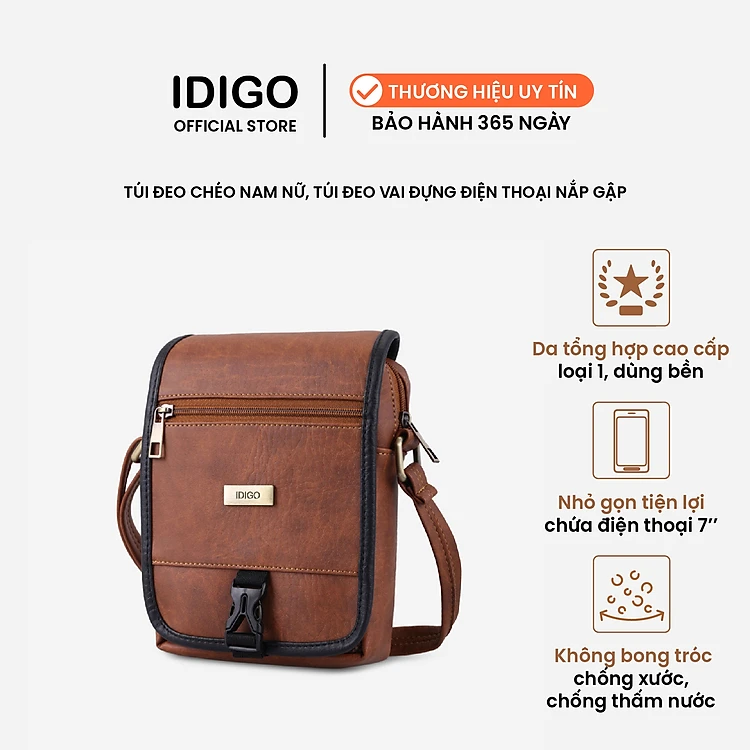 Túi đeo chéo nam nữ đi chơi IDIGO UB2 - 2006, túi đeo vai cá tính phom đứng nắp gập
