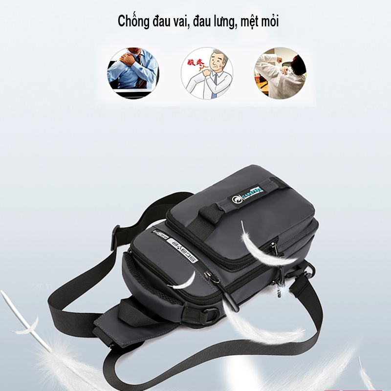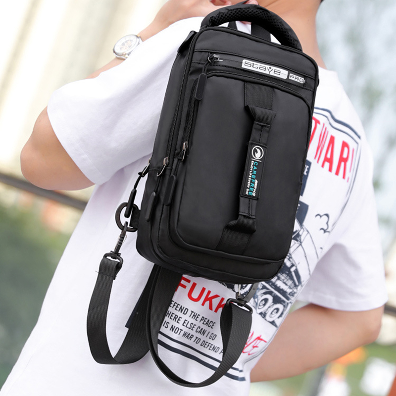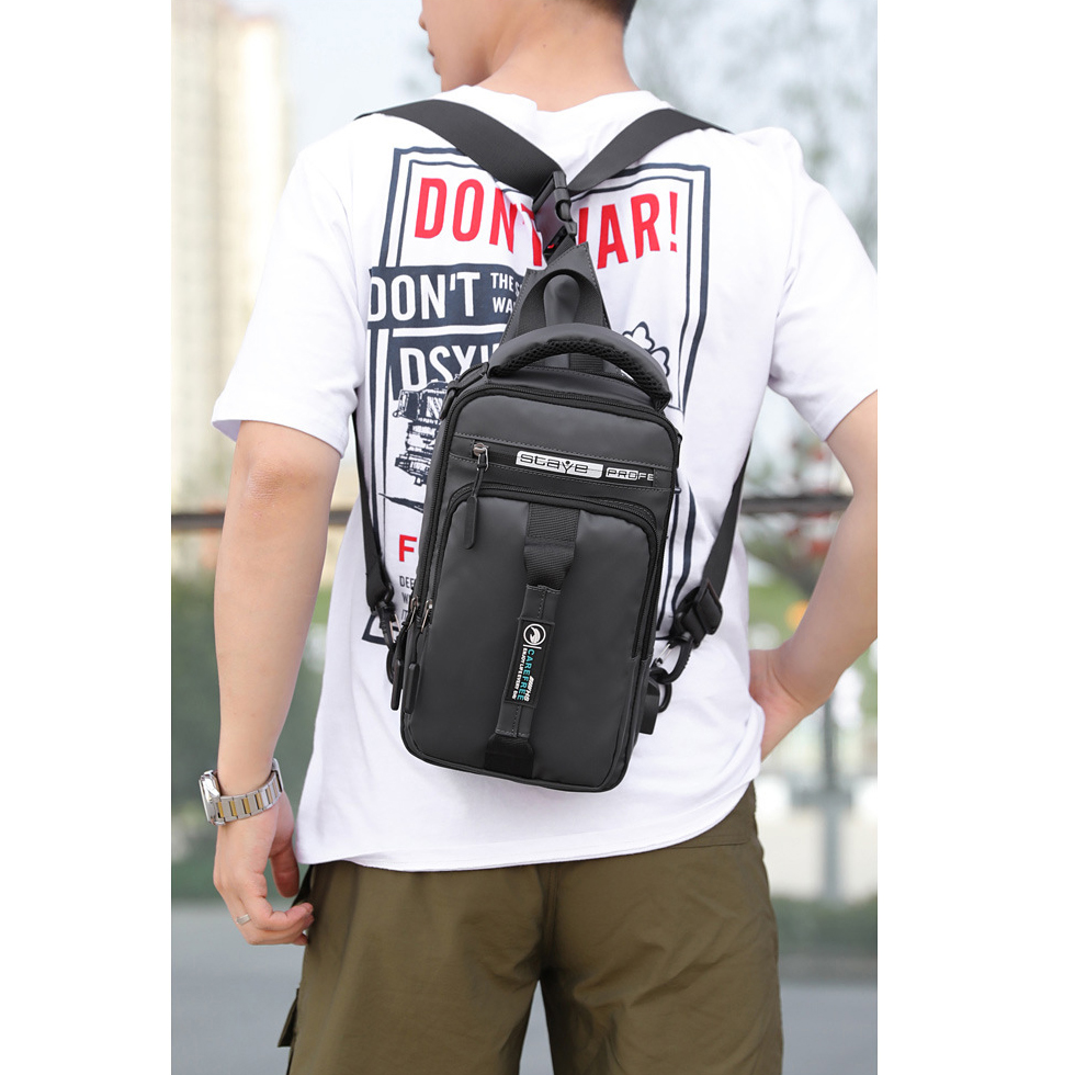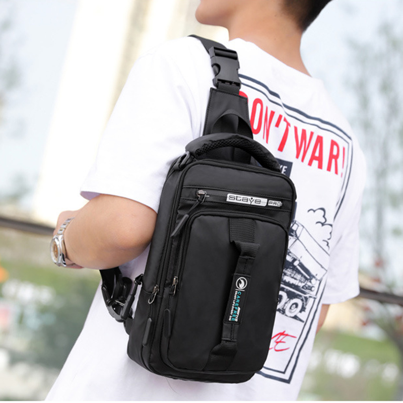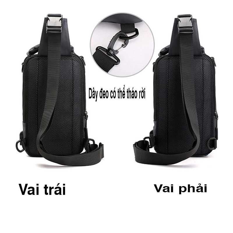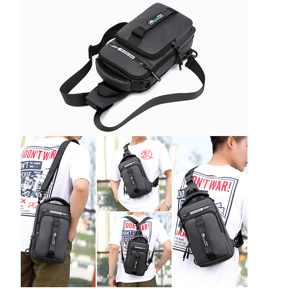 Túi đeo chéo nam , túi đeo vai , nối cáp sạc USB tiện lợi,  đeo ngực đa năng đeo nhiều kiểu kết hợp balo , dây quai có thể tháo rời , vải chống nước