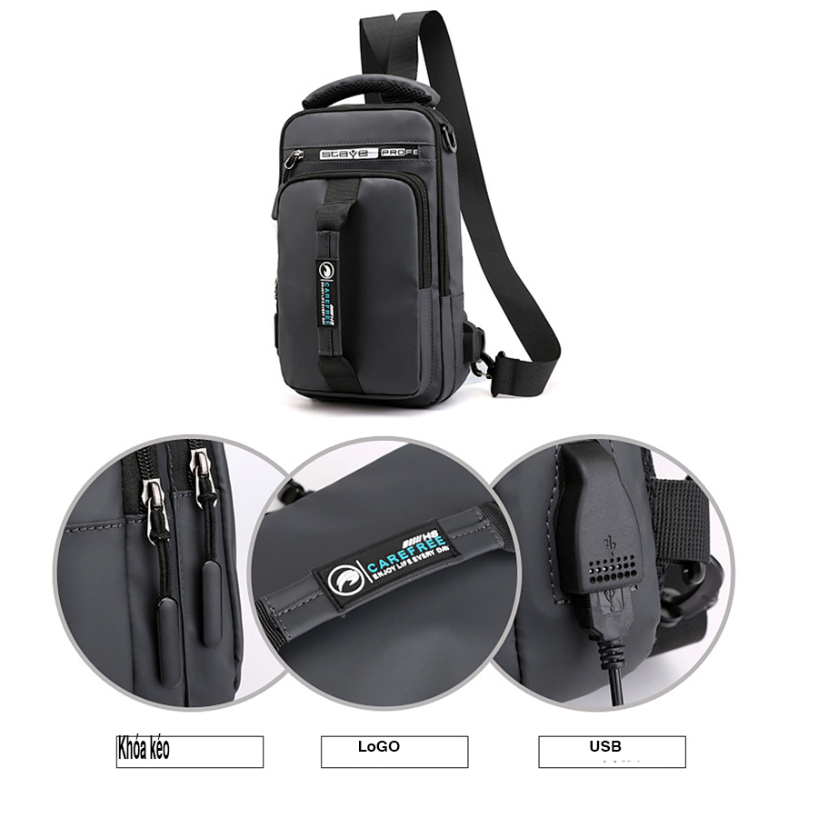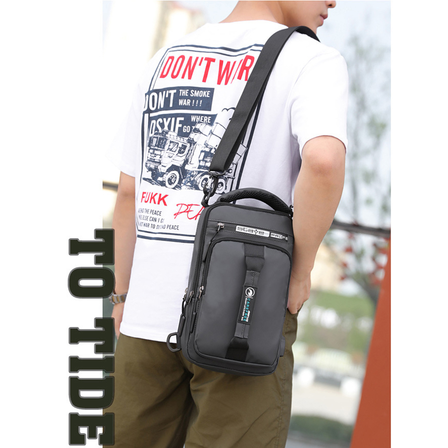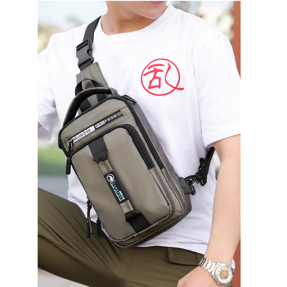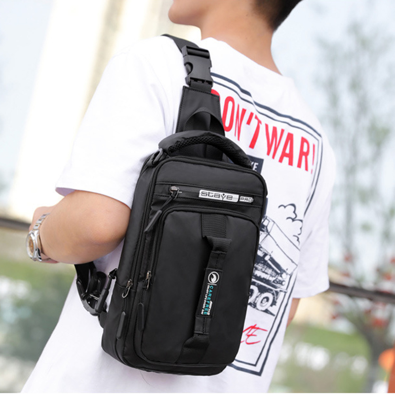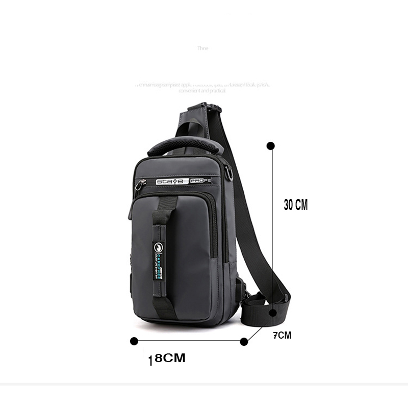 Túi đeo chéo nam , túi đeo vai , nối cáp sạc USB tiện lợi,  đeo ngực đa năng đeo nhiều kiểu kết hợp balo , dây quai có thể tháo rời , vải chống nước