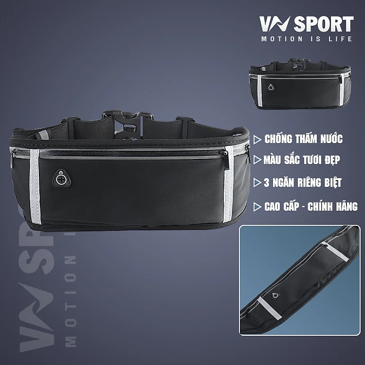 Túi Đeo Hông Chạy Bộ, Đạp Xe, Dã Ngoại VNSPORT - VN3808, Túi Cao Cấp Chống Thấm Nước , Có 3 Ngăn Riêng Biệt Và Có Phản Quang, Thể Thao Và Rất Đẹp Cho Cả Nam Và Nữ