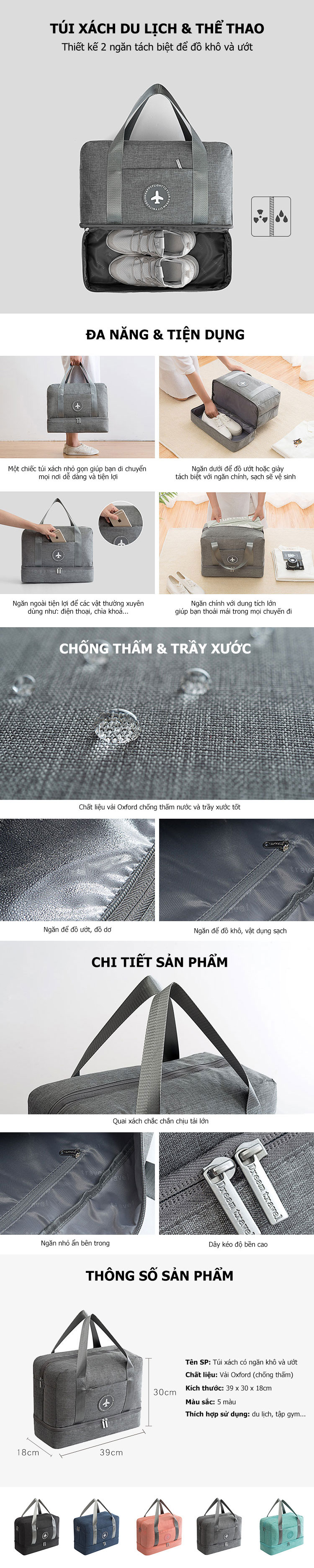 Túi Du Lịch Chống Thấm Travel Có Ngăn Đựng Giày