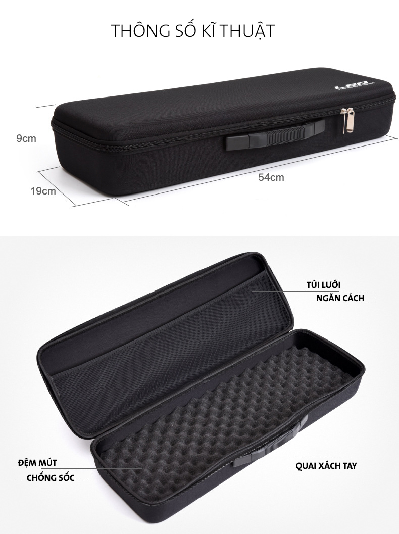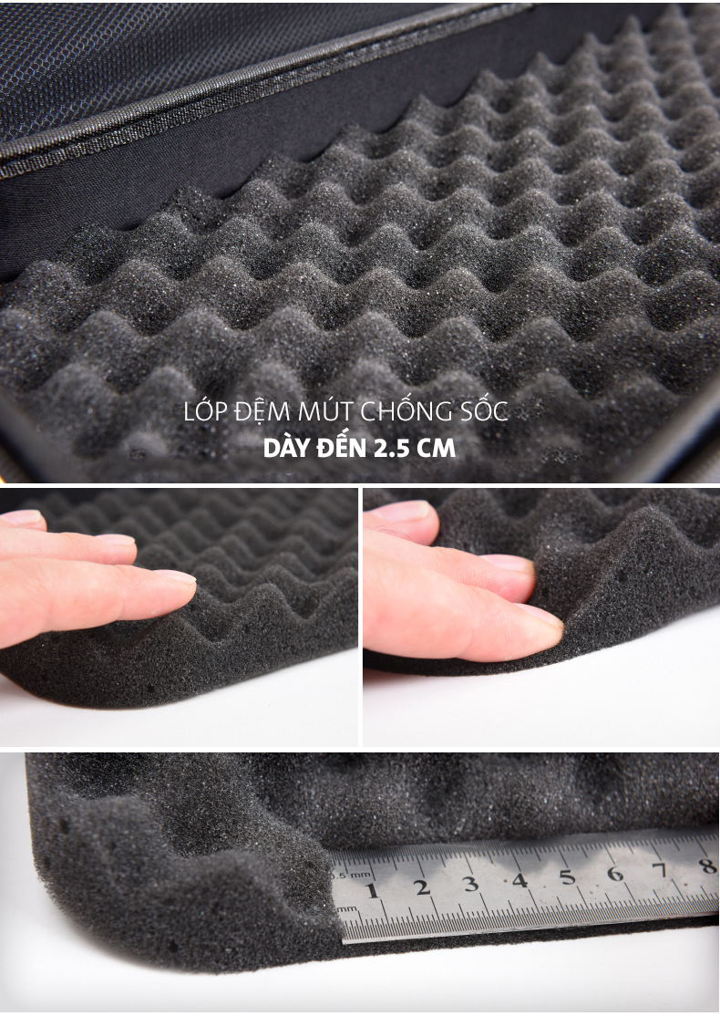 · Toàn bộ phần khung túi được làm bằng chất liệu EVA siêu bền, có tính dẻo, chịu được va đập.