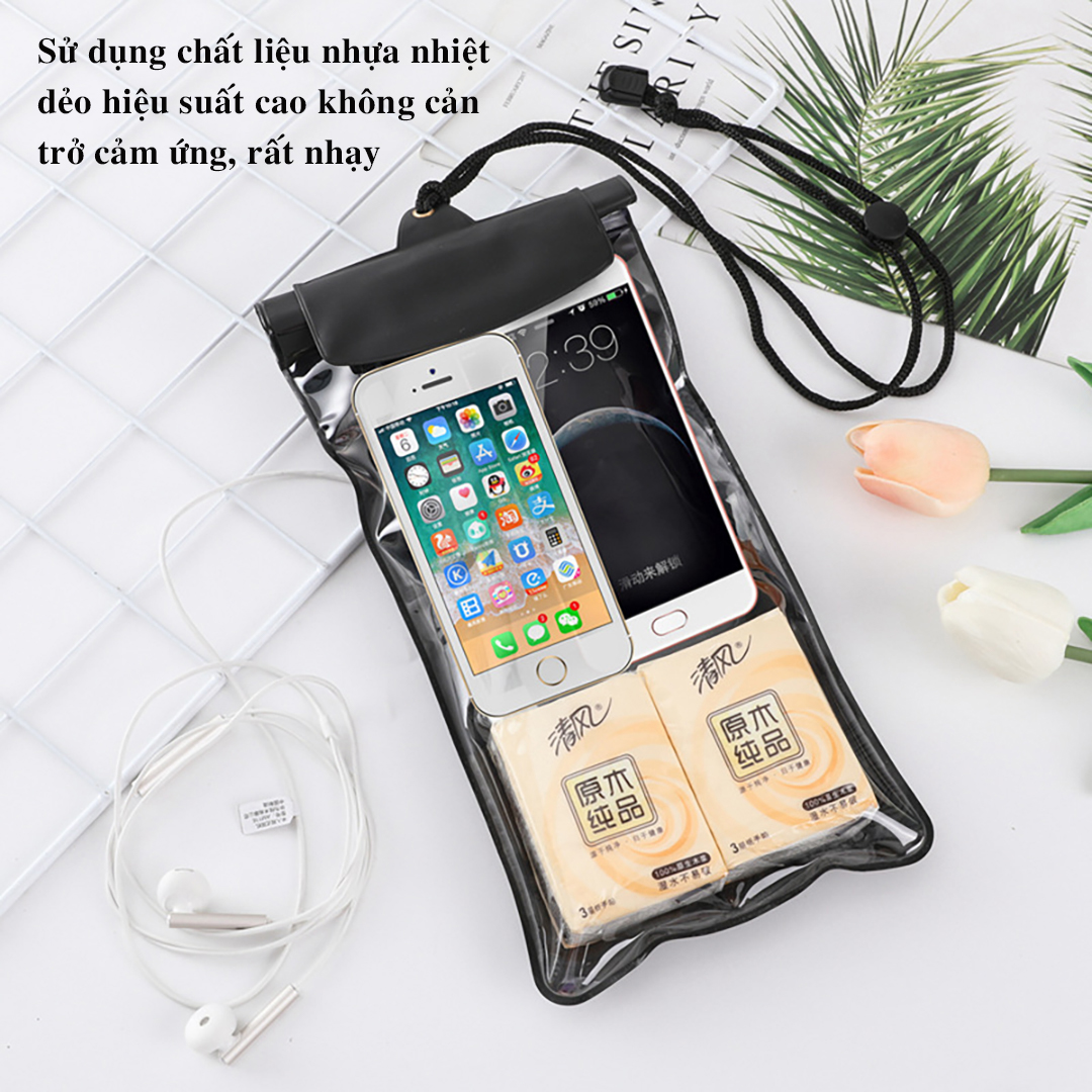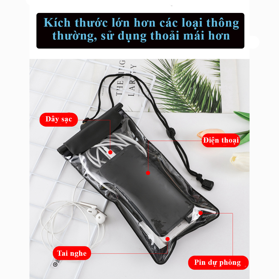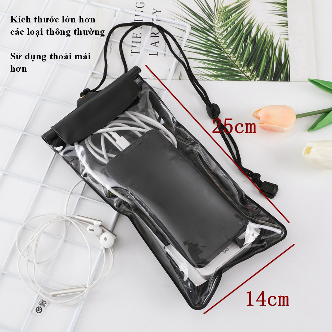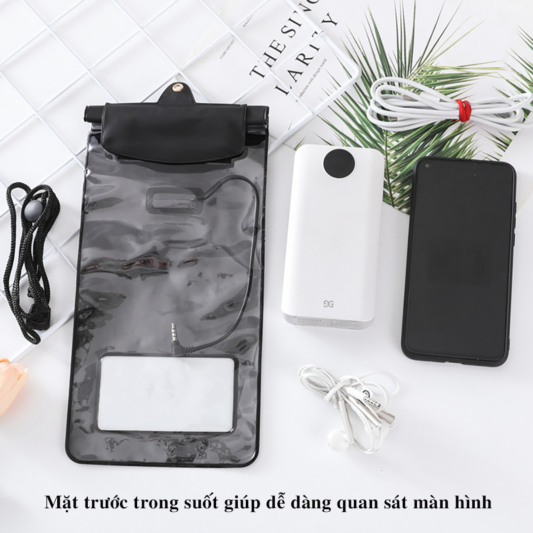 Túi đựng điện thoại chống nước D019 loại lớn bao chống nước điện thoại trong suốt có dây đeo và jack cắm dây tai nghe