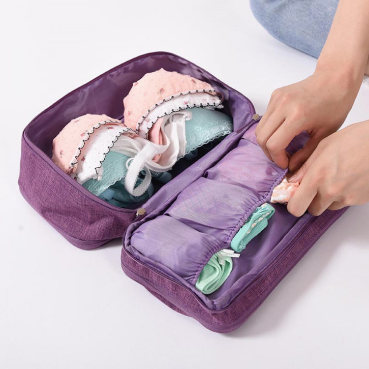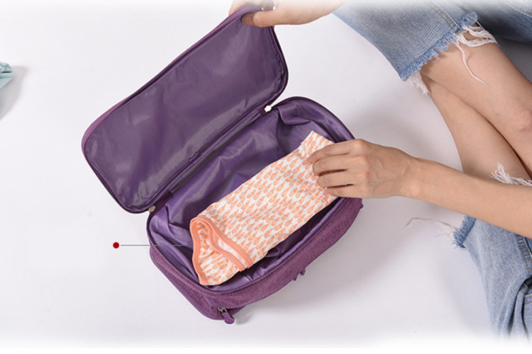 - Túi đựng đồ lót du lịch rất gọn gàng tiện ích , giúp quần áo của bạn trong vali ngăn nắp dễ tìm mà còn rất lịch sự nữa nhé. Và không chỉ dùng riêng cho việc để đồ lót bạn có thể để nhiều đồ dùng khác nhau nữa nhé, và kéo dây kéo lại đồ đạc sẽ nằm gọn trong túi đựng đồ lót du lịch xách đến bất cứa đâu.