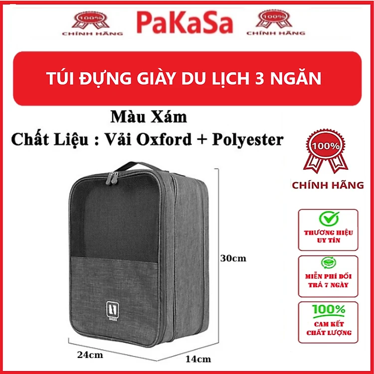 Túi Đựng Giày Dép Du Lịch 3 Ngăn Chất Liệu Chống Thấm Nước, Túi Để Giày Thể Thao Đa Năng Có Móc Gài Tay Kéo Vali Tiện Lợi - Hàng chính hãng