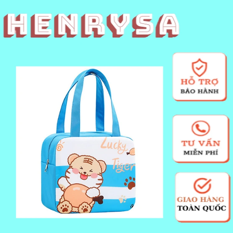 Túi đựng hộp cơm giữ nhiệt ấm thức ăn có khóa kéo, vải bọc chống thấm nước cao cấp - Chính hãng HENRYSA