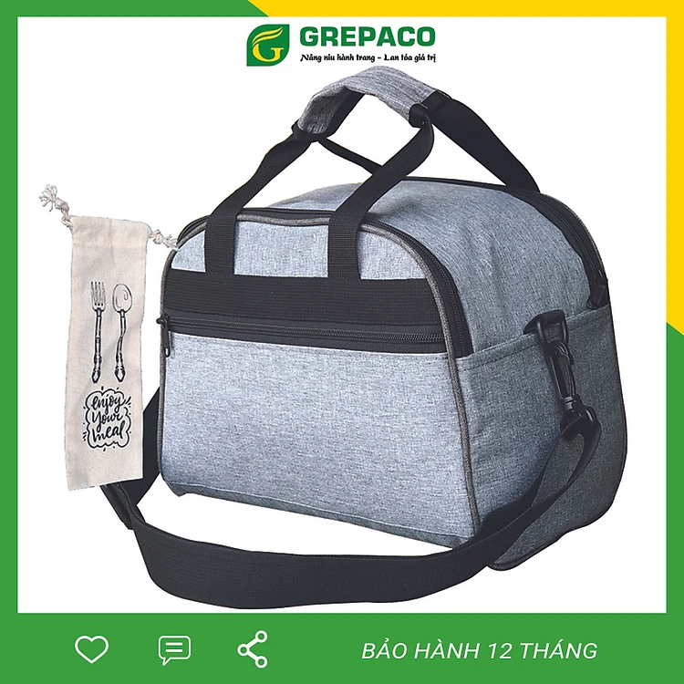 Túi Đựng Hộp Cơm Giữ Nhiệt Grepaco Nhiều Ngăn Đựng Đồ Thức Ăn Nóng Lạnh Văn Phòng, Mẹ Bỉm Du Lịch – Vải Bố Canvas, Kích Thước Size To (Cỡ Lớn), Kiểu Quai Xách Và Đeo Vai - Tặng Túi Đựng Muỗng Nĩa - Hàng Chính Hãng