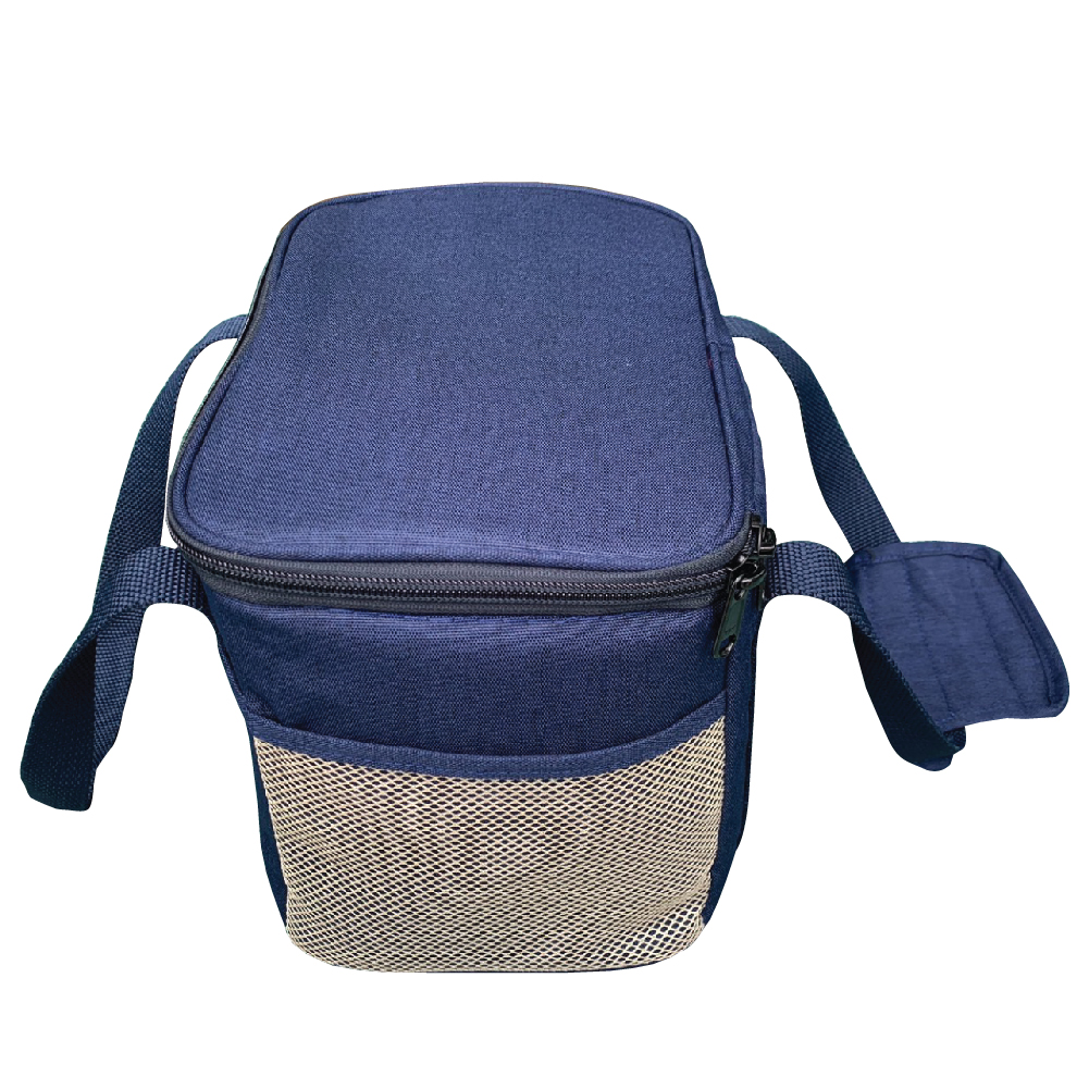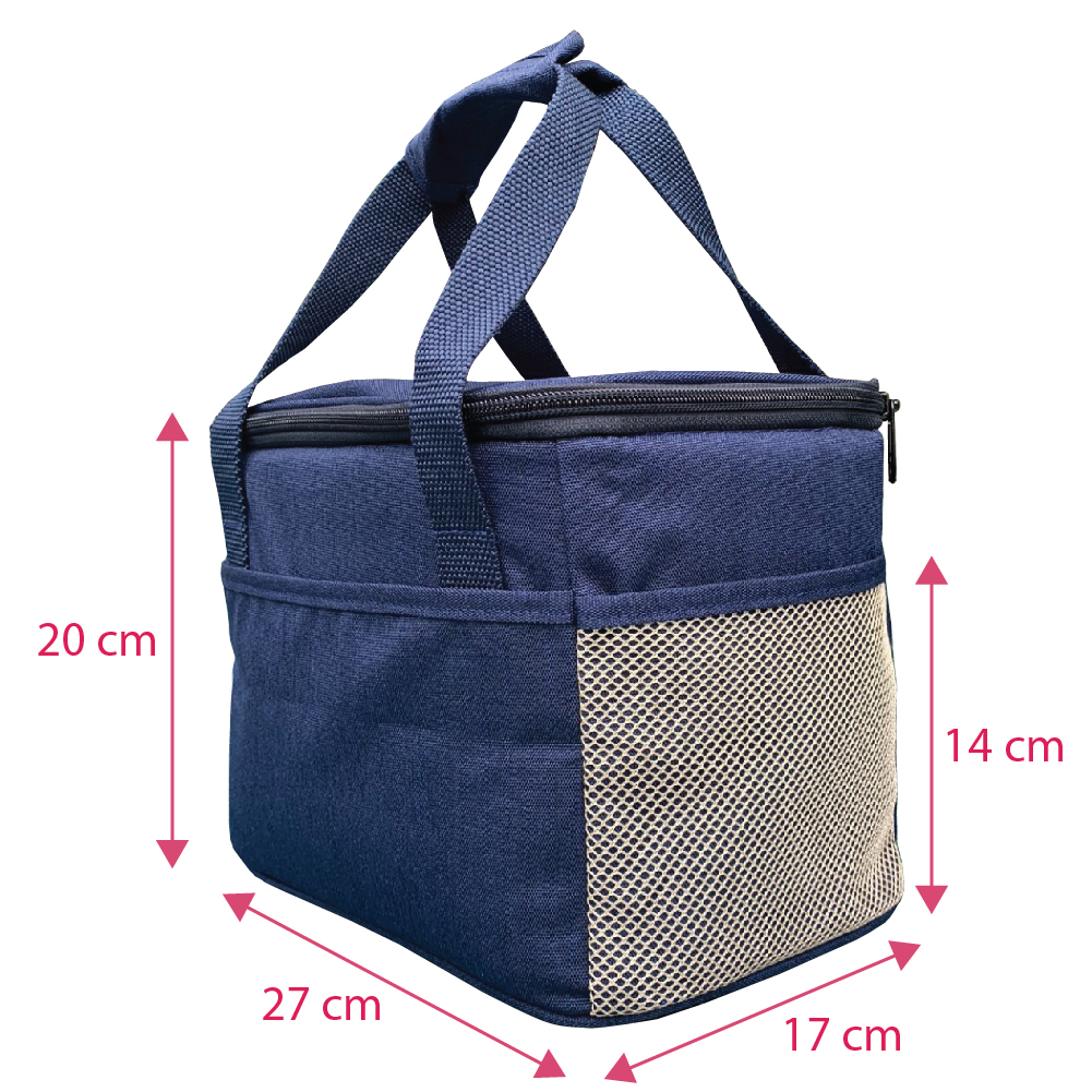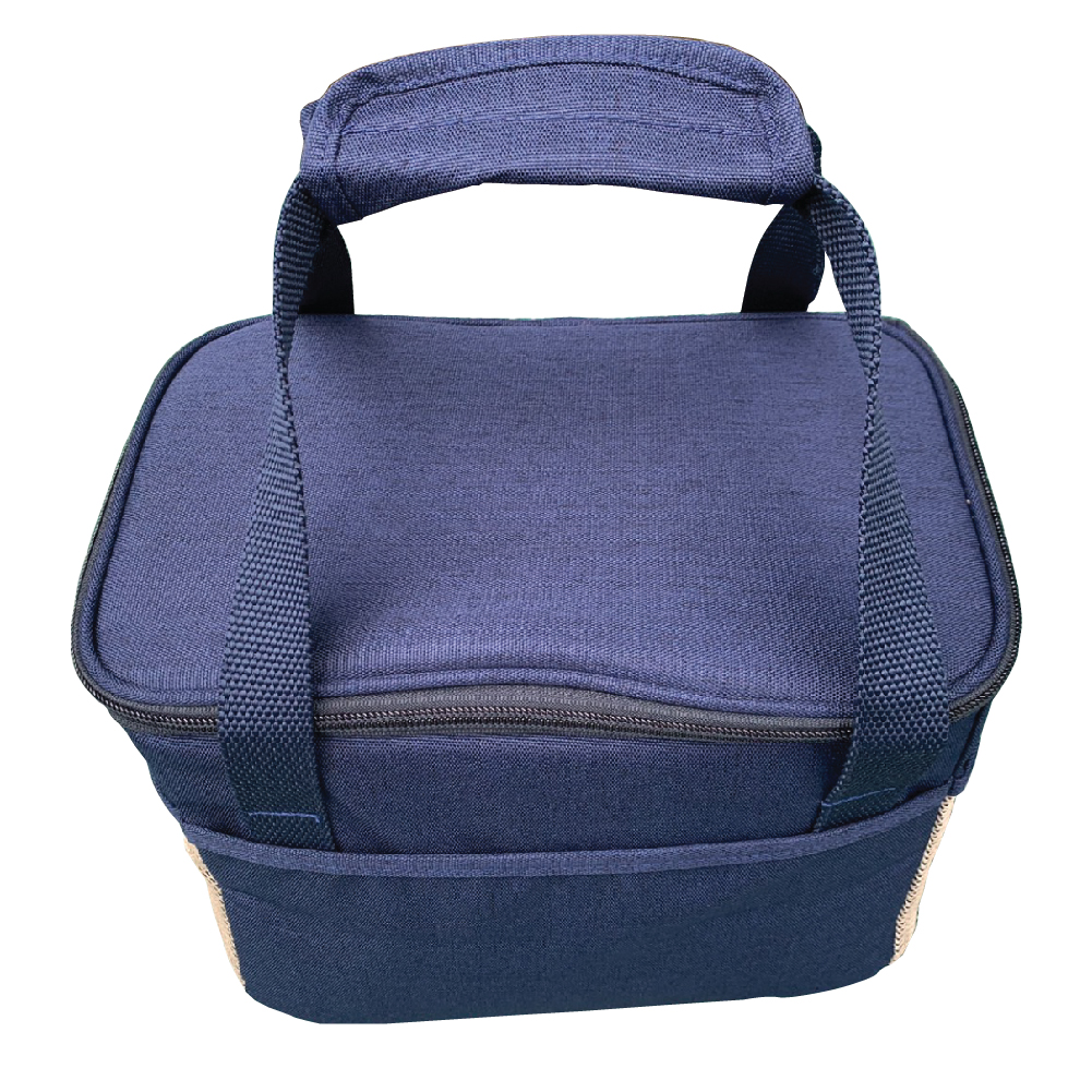 Túi Đựng Hộp Cơm Giữ Nhiệt Văn Phòng Dạng Hộp Màu Xanh Navy Có Dây Khóa Kéo Với Nhiều Ngăn Phụ Tặng Túi Muỗng Nĩa (Lunch Bags, Box)