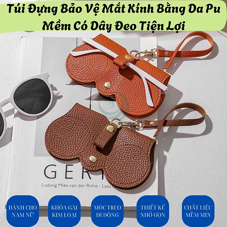 Túi đựng kính, có dây buộc- Túi đựng kính râm da PU 14x7cm