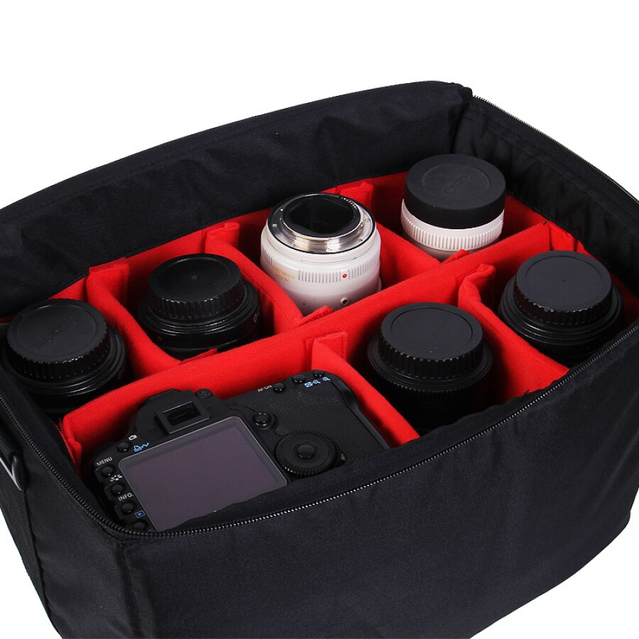- Thiết kế thông minh với 7 ngăn đựng riêng biệt, có 1 ngăn lớn đựng máy ảnh và 6 ngăn đựng ống kính.
