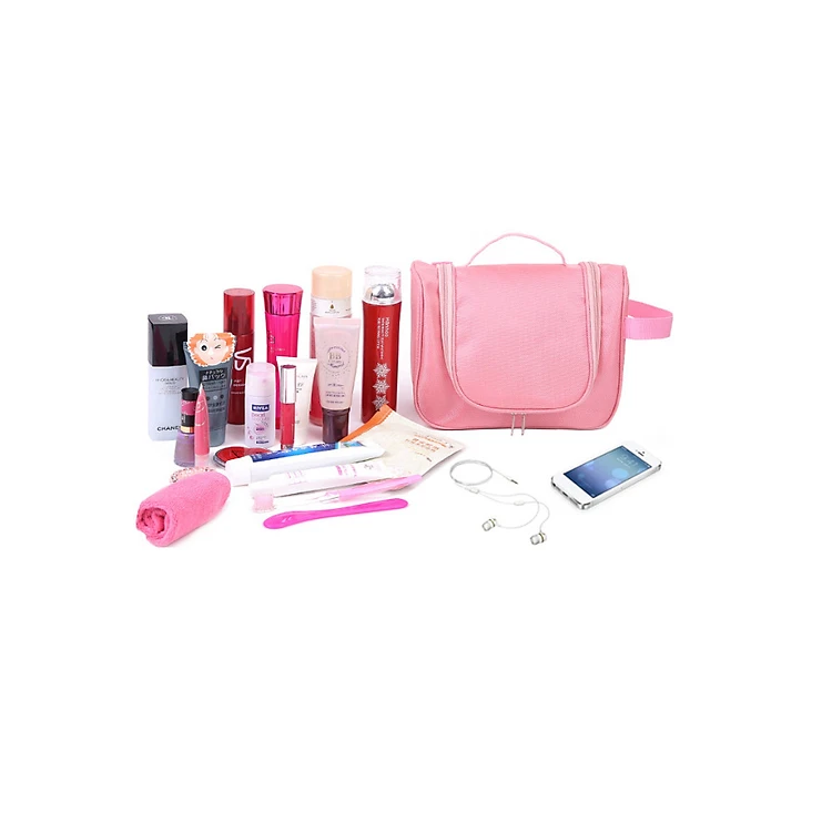 - Túi đựng mỹ phẩm du lịch cao cấp, đựng đồ trang điểm, make up, dầu gội, sữa tắm giúp bạn sắp xếp gọn gàng trong vali. Có móc treo tiện lợi có thể treo vào tủ trong khách sạn