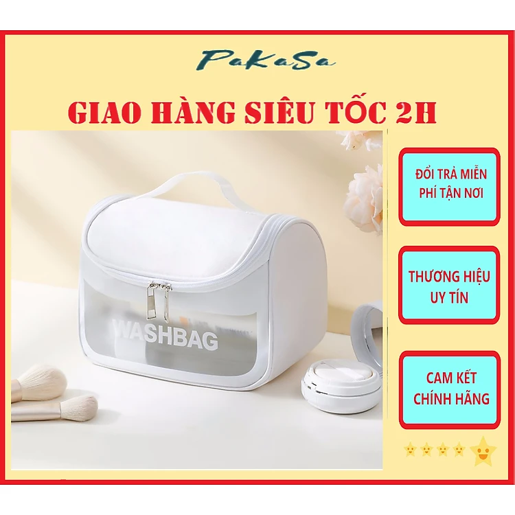 Túi đựng mỹ phẩm du lịch WashBag DẠNG HỘP có quai xách mini trong suốt, Túi đựng đồ trang điểm makup chống nước - Chính Hãng