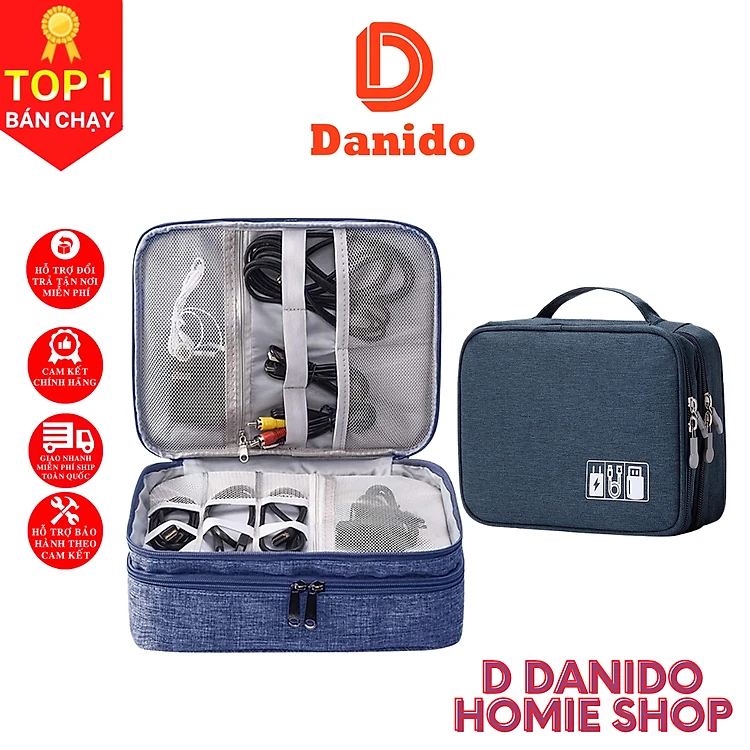 Túi đựng phụ kiện điện thoại 2 ngăn lớn cải tiến nhiều ngăn chống nước, chống sốc - Túi đựng bảo vệ phụ kiện điện thoại máy tính bảng cao cấp chính hãng D Danido
