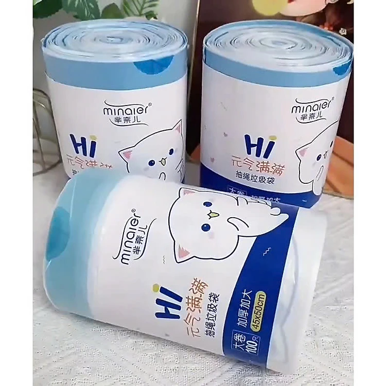 Túi Đựng Rác Cuộn 100 Túi Có Dây Rút 45x50cm – Loại Siêu Dày 360gr / Mỏng 250gr – Nhựa PE Dai Chắc Chắn, Chống Rò Rỉ Nước - HÀNG CHÍNH HÃNG MINIIN