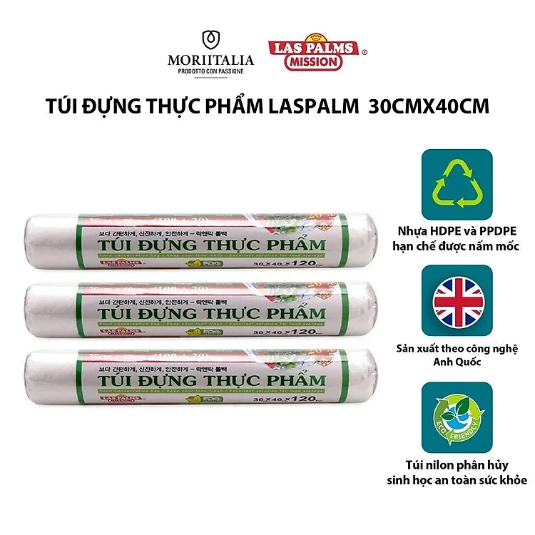 - Túi đựng thực phẩm Laspalm là túi nilon tự phân hủy, không gây ô nhiễm môi trường như các loại túi nhựa thông thường.